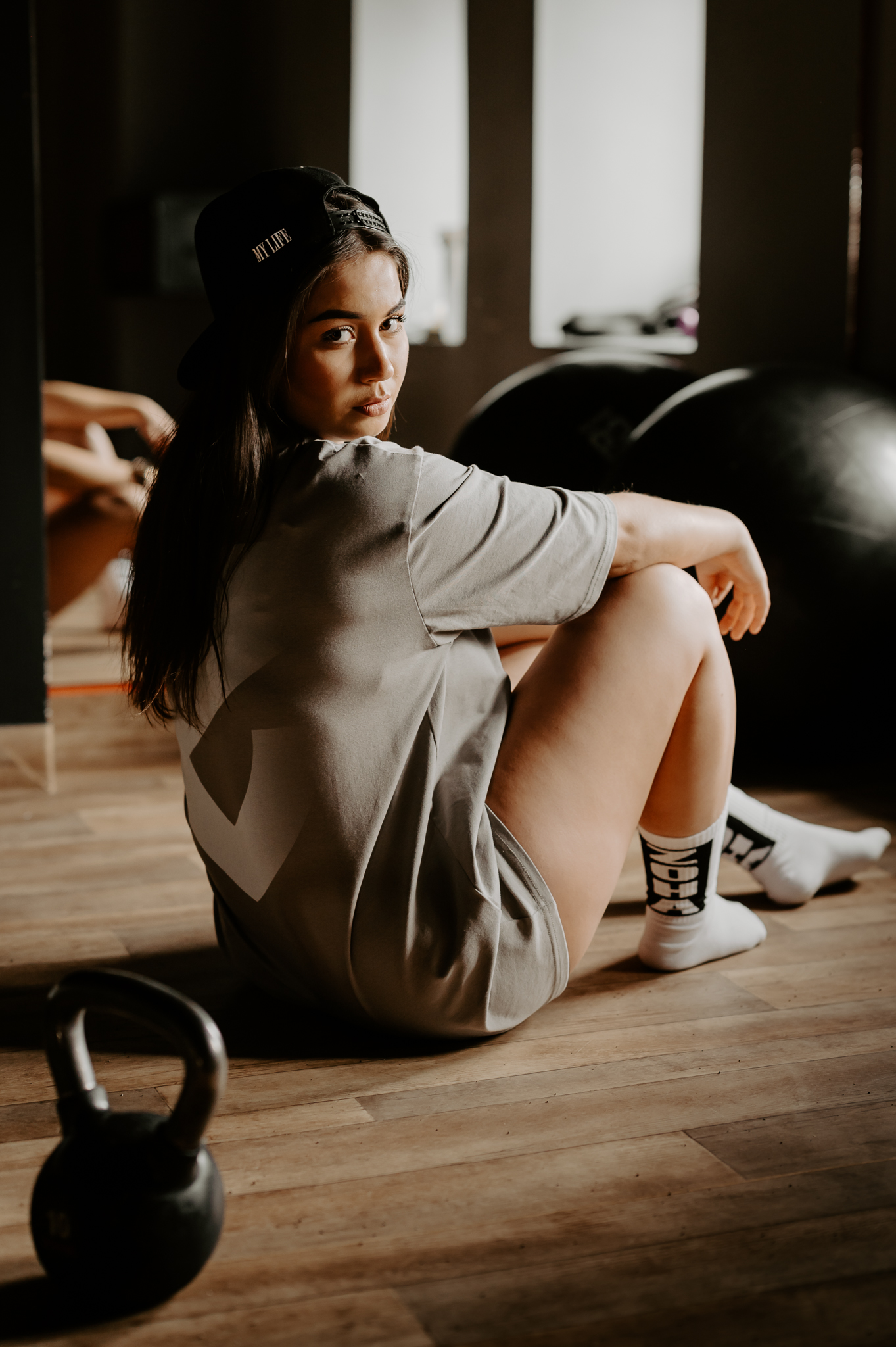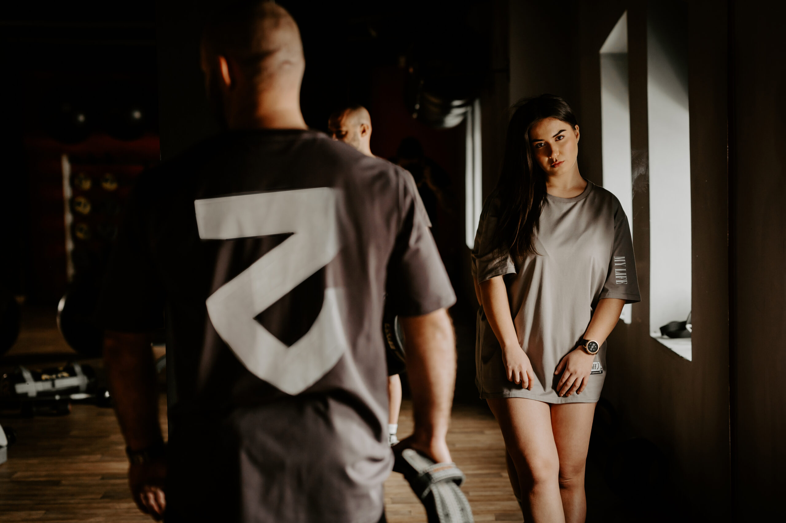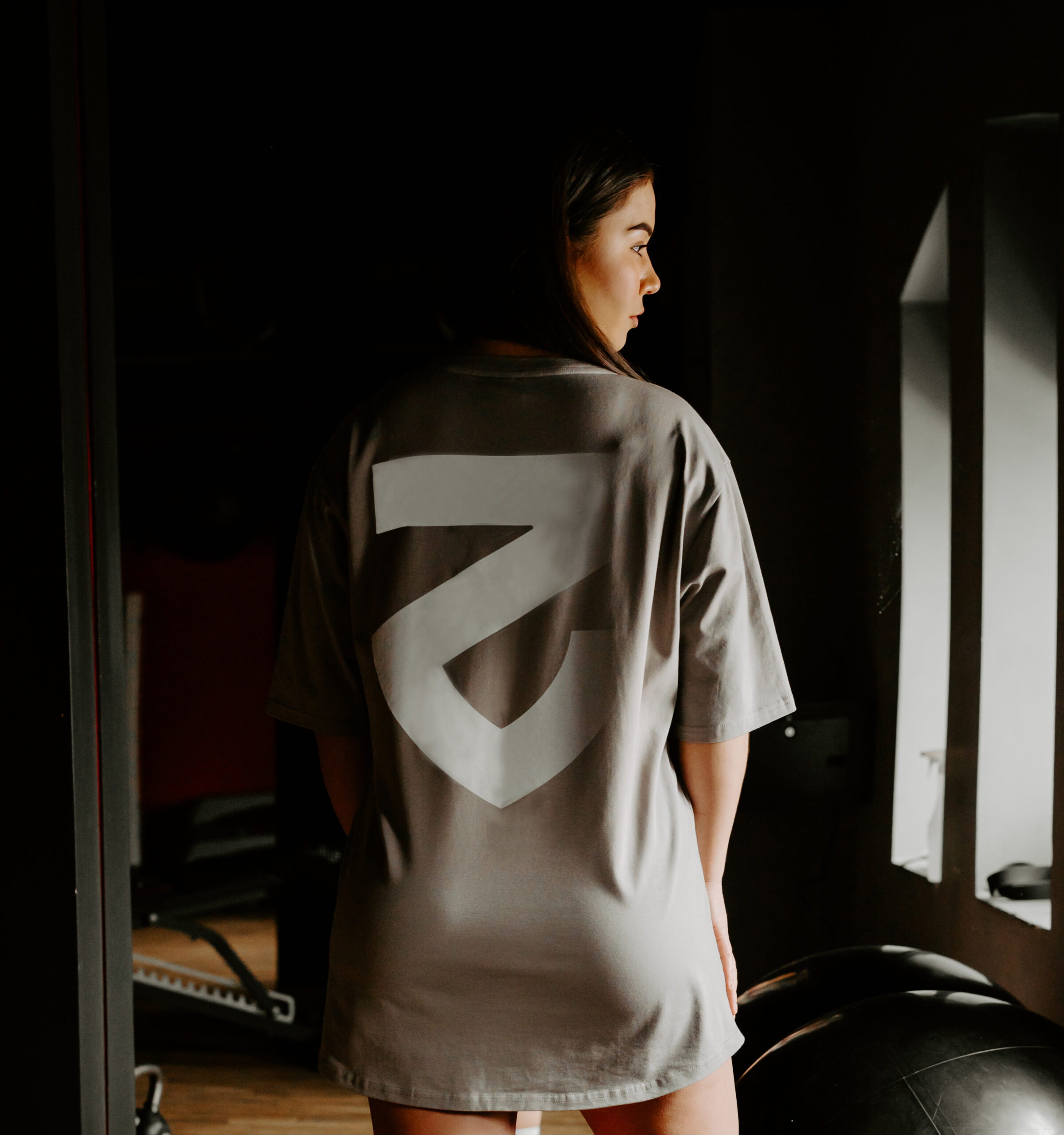 T shirt o kroju OVERSIZE dla kobiety i mężczyzny w jasnoszarym kolorze. Idealny na trening, ale pasuje również do codziennych stylizacji.